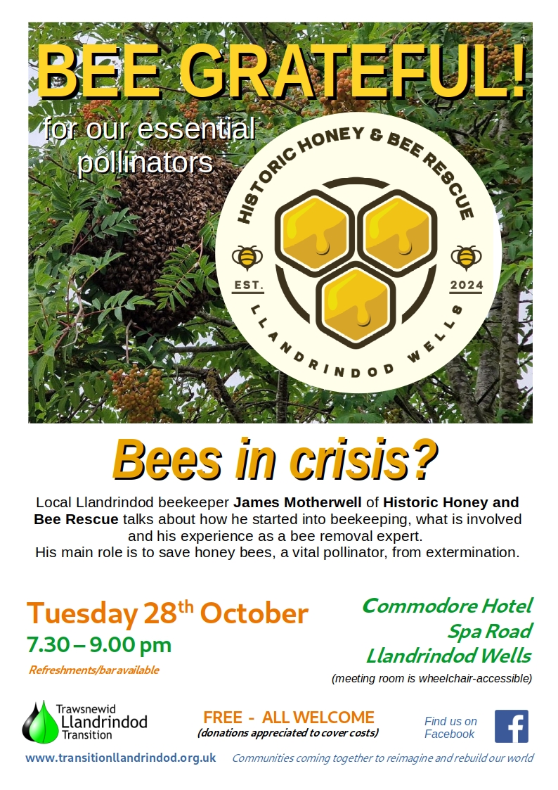 Buzz along to this month's meeting on Tuesday 28th October at The Commodore where we look forward to some unusual insights into the world of bees and their importance to 'our' world.